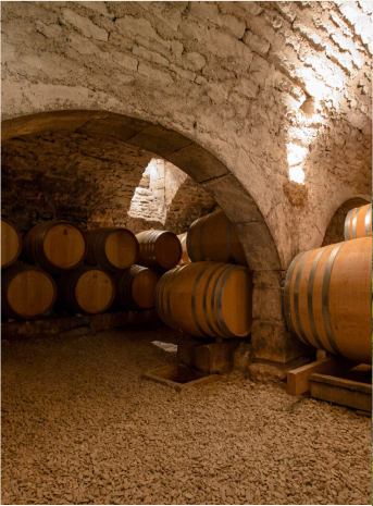 Pause gourmande comprenant la visite de l’Obédiencerie et de ses caves du IXᵉ siècle, suivie de la dégustation des crus du Domaine.
